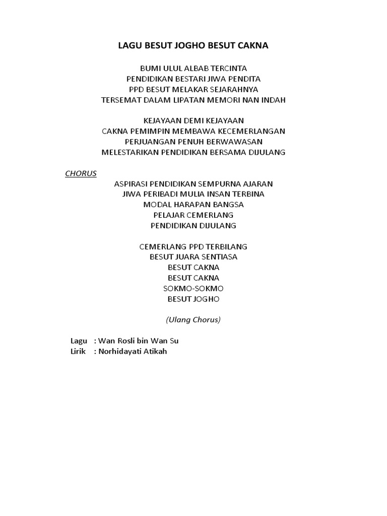 Besut cakna besut cakna sokmo-sokmo besut jogho ulang chorus lagu. Impian Realiti Kecemerlangan. Berikut adalah petikan lirik lagu mungkin diriku yang terlalu mencintaimu memberi kasihku tanpa ragu dan setiap waktu dan ketika selalu ku fikirkan kamu hanya diri.